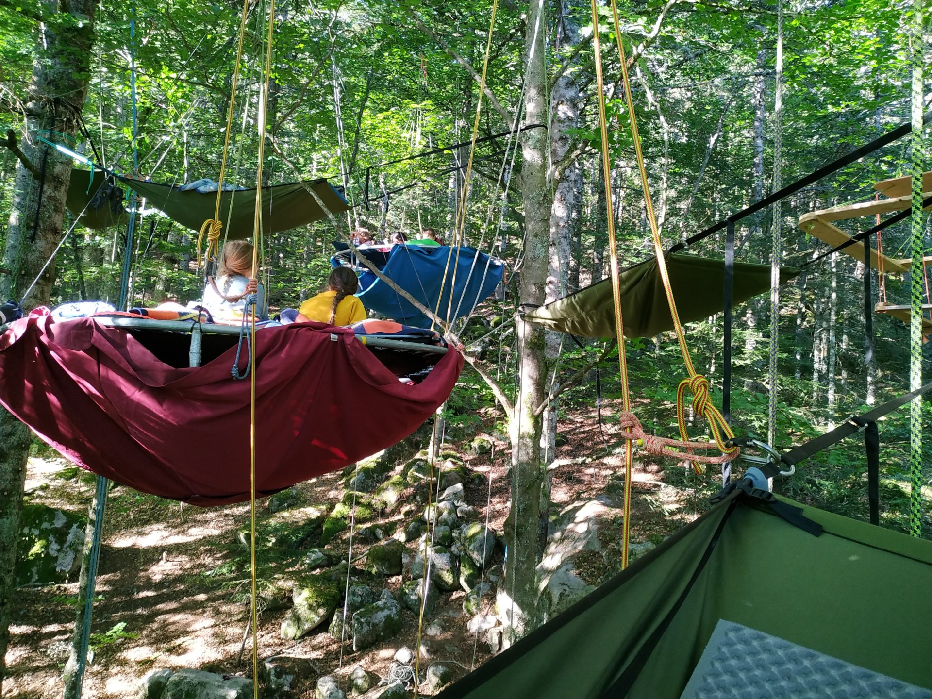 nous découvrirons verticalement et horizontalement la forêt et créerons des souvenirs inoubliables autour de la pleine nature et de la vie collective, pour en ressortir grandi et encore plus autonome. Les baudriers n’attendent que vous !